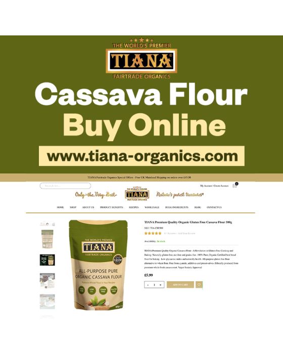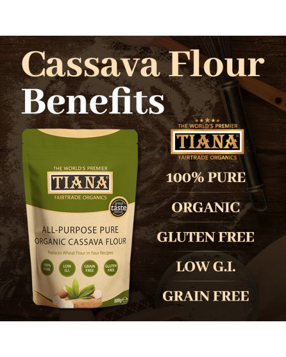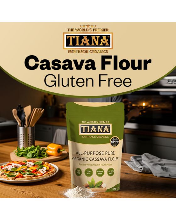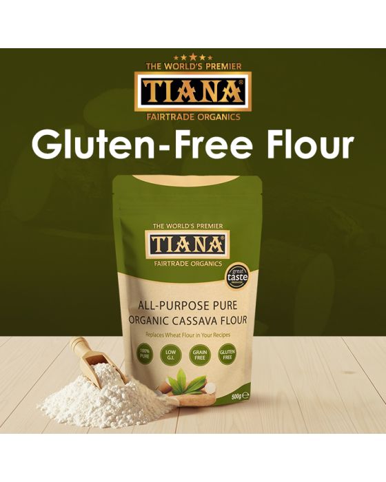 TIANA Premium Quality Organic Cassava Flour - A Revolution in Gluten-Free Cooking and Baking. Naturally gluten-free, nut-free and grains-free. 100% Pure, Organic Certified best bread flour for baking. Low glycaemic index and naturally health. All-purpose gluten free flour alternative to wheat flour. Free from cyanide, additives and preservatives. Ethically produced from premium whole fresh cassava root. Vegan Society Approved