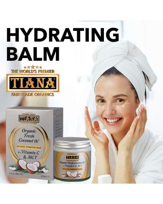 Experience the natural power of coconut and Vitamin C with TIANA® Fairtrade Organic Intensive Hydrating Balm – your all-in-one solution for radiant, nourished, and hydrated skin.