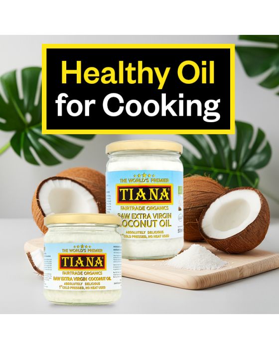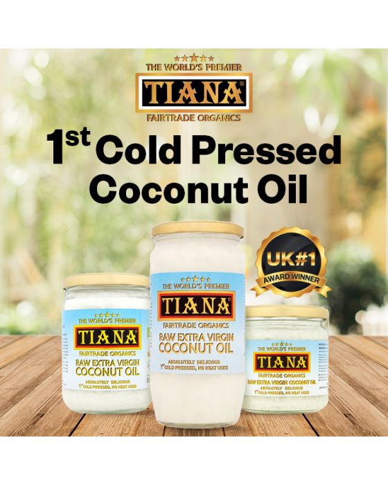 TIANA® Fairtrade Organics Raw Extra Virgin 1st cold pressed Coconut Oil is available in recyclable glass jars and large formats.
