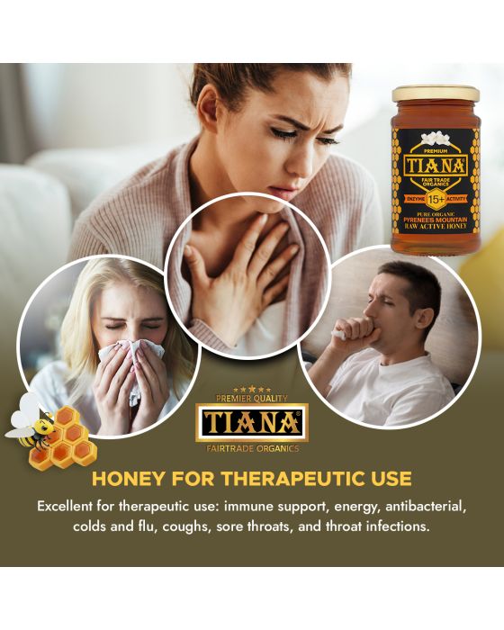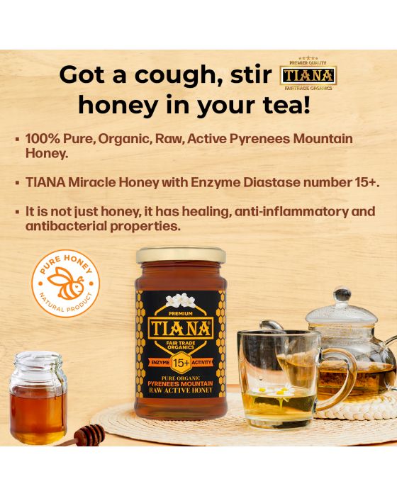 TIANA Fairtrade Organic Raw Active Pyrenees Mountain Honey 15+
